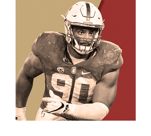 As the 49ers make the switch to a Seahawks-esque 4–3 scheme under new defensive coordinator Robert Saleh (a former Pete Carroll assistant), adding a Michael Bennett type of versatile inside-outside pass rusher is a good start. Thomas can align wide in base looks alongside San Francisco defensive linemen DeForest Buckner and Arik Armstead, then bump inside to rush against guards in obvious passing situations. He saw plenty of action in both areas in Stanford’s scheme, grabbing 10 sacks, 12 hits, and 22 hurries on 394 pass-rush snaps last year for the Cardinal.