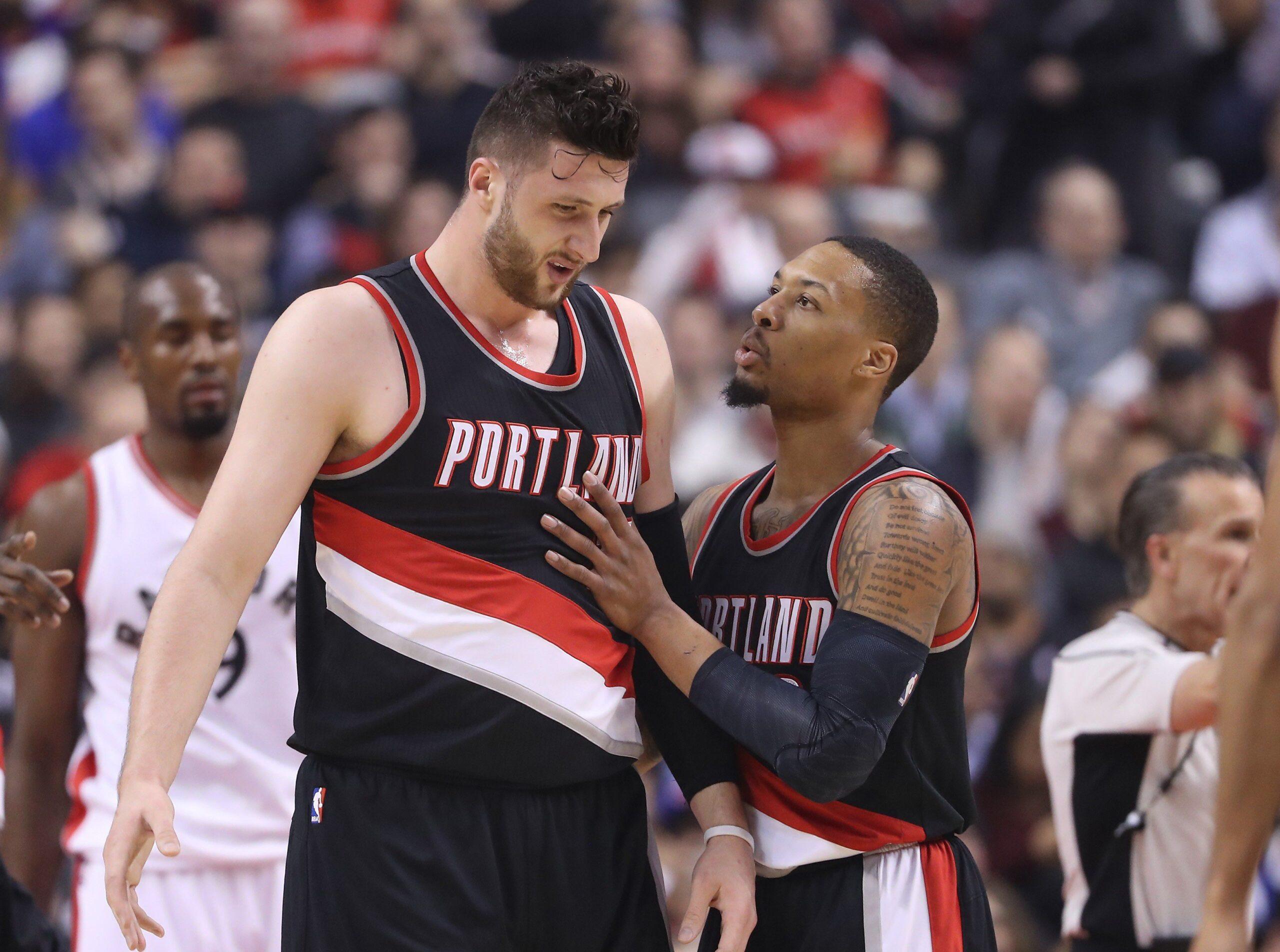 Early in Tuesday’s crucial game against the Nuggets, Damian Lillard and Jusuf Nurkic ran a pick-and-roll. Lillard dished to Nurkic right as he barreled into the paint. Danilo Gallinari and Nikola Jokic collapsed on him, which was just fine with Nurkic. There was no nod toward subtlety, no feint at finesse. The 7-foot Blazers center bulldozed both of his former teammates, knocking Gallinari back a few feet in the process. Nurkic reached the rim, made the layup, and got fouled. Meyers Leonard and the guys at the end of the Blazers bench immediately leapt up and high-fived him. The crowd chanted his name. They do that a lot these days. Oh how they love Nurkic in Portland, and oh how he loves them.