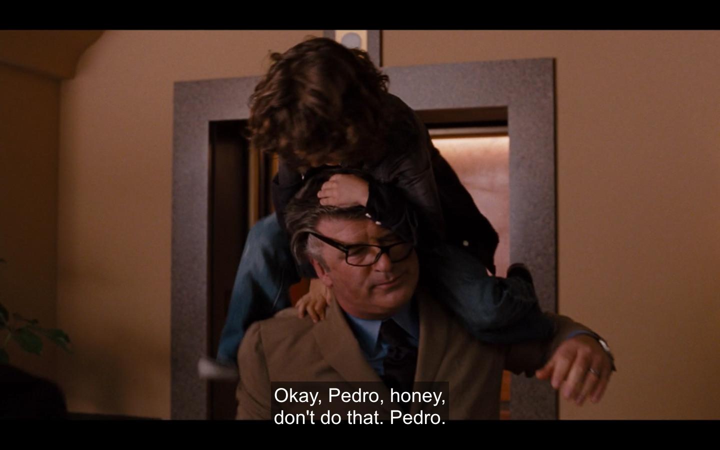 Things first perked up artistically late in the Basinger years. Baldwin is one of the few tolerable parts of Michael Bay’s 2001 atrocity Pearl Harbor; he is, quietly but firmly, one of the better unseen narrators in recent film history in Wes Anderson’s The Royal Tenenbaums. He did two Martin Scorsese films and is particularly fantastic in The Departed, once again surrounded by Serious Actor Men bludgeoning each other with words and sneers and various weapons, but his quotes are the ones you remember. “Can I talk to you for a second, please?” “Normally he’s a very, uh, nice guy.” “Go fuck yourself.”