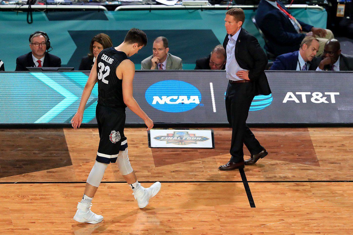 Collins, a springy McDonald’s All American with the wingspan of a condor, fouled out with five minutes to go, robbing the Zags of one of their few functioning offensive weapons and an intimidating defensive presence. The most exciting aspect of the game was the matchup of the two frontcourts, but both teams saw two starting bigs pick up four fouls apiece. In the closing minutes of the year’s closing game, the most important players had to play tentatively — if they were even able to play at all.