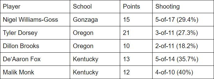 North Carolina returned almost its entire team from last season, which is almost unheard of for a blue-blood program in the one-and-done era. Roy Williams has turned his inability to lure the best recruits to Chapel Hill into a virtue, building a team full of upperclassmen who are more experienced and physically mature than their opponents. The tip of the spear of the UNC defense was formed by their two junior wings, Theo Pinson and Jackson, and the duo made life miserable for the guys they were guarding all tournament long. Pinson, at 6-foot-6 and 211 pounds with a 6-foot-10 wingspan, and Jackson, at 6-foot-8 and 210 pounds with a 6-foot-11 wingspan, towered over their opponents, who weren’t used to getting off shots over such long and active defenders. Almost all of these guys were having great tournaments before they ran into UNC: