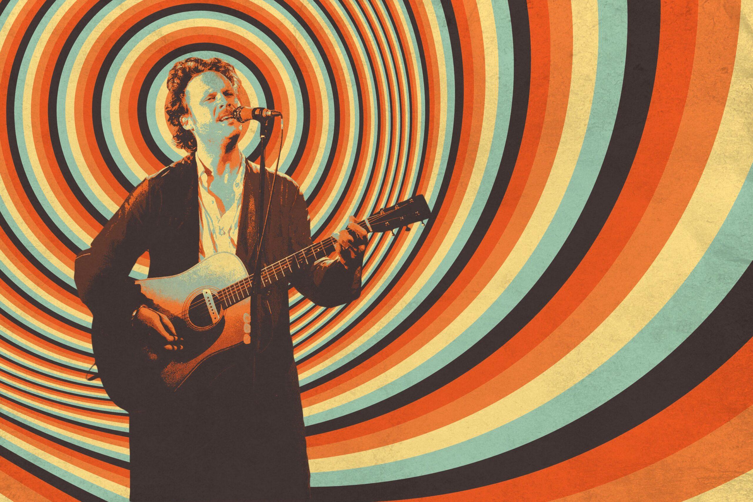 Father John Misty’s origin story has been so widely reported at this point that we can here condense it down to its most compelling biopic beats. He grew up in a staunch evangelical household in Maryland, sheltered from most secular culture but in possession of a drum kit; at 18, he left home and also heard the Beatles for the first time. A stroke of luck got him a gig drumming for the po-faced folk-rock band Fleet Foxes in 2008, which more than paid the bills while he made earnest, self-described “sad bastard” solo albums on the side, under the name J. Tillman. Then, shortly after he quit Fleet Foxes in a fit of creative dissatisfaction, he took mushrooms in Big Sur and, naked and alone in a tall tree, had an epiphany: “Just be me. The real me. The sarcastic, overcompensating asshole.” He concluded, with simple awe, “It just never occurred to me to write like myself.” When he returned from the other side, newly convinced that his deepest self was actually the one on the surface, he’d chosen a name for this new persona: Father John Misty. “No!” one of his friends begged him, according to The New York Times. “Do not call it that.”