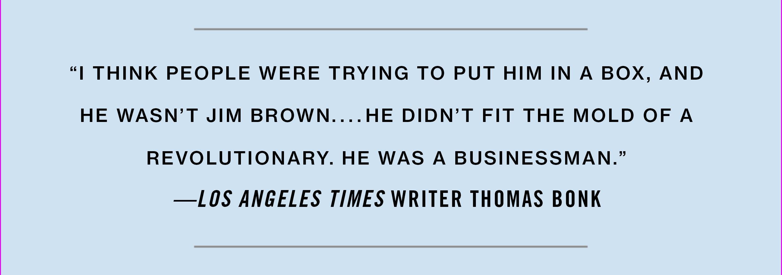 "I think people were trying to put him in a box, and he wasn’t Jim Brown," says longtime Los Angeles Times golf writer Thomas Bonk, one of the few journalists who managed to forge a decent working relationship with Woods. "He grew up along with a lot of white kids who were his good friends. He didn’t fit the mold of a revolutionary. He was a businessman."