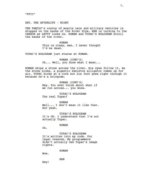 Synopsis: They live their afterlives a quarter mile at a time. After Dom and Cipher perish on the Decepticon mothership after the Battle of the John Deere, the family will stop at nothing to get them back. Letty, Hobbs, the Shaws, Han, Ramsey, Roman, and Tej, alongside new cast member the hologram of 2Pac (played by Tupac Shakur’s hologram), ride into the afterlife to bust their family members out of a little prison called death.