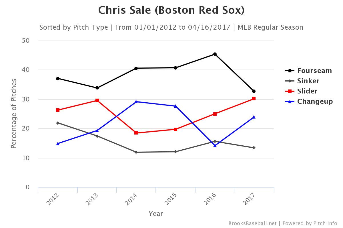 Sale has had a throwback start to the season because he’s evolved (or devolved) in two noteworthy ways. First, he’s gone back to using his devastating secondary stuff. And second, when he has thrown his fastball, he hasn’t eased off the gas as often.