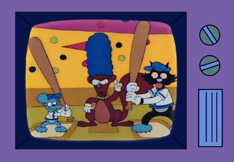 Marge responds by founding Springfieldians for Non-Violence, Understanding and Helping. SNUH leads protests against Itchy & Scratchy, which lampoons Marge on the show by turning her into a squirrel that the cat and mouse bash with baseball bats. But the program is besieged by angry letters. At that point, Myers calls the screwball for ideas on how to make the cartoon less violent. With Marge’s help, the show’s hacky writers create an episode in which Itchy and Scratchy share a pitcher of lemonade. Naturally, Springfield’s kids hate it and stage a protest of their own by turning off their TVs and playing outside.