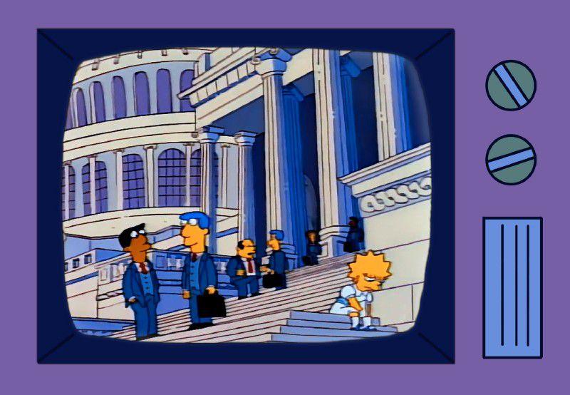 In which Lisa learns that institutions are corrupt but not beyond saving. After her Springfield Forest–themed patriotic essay wins the Simpsons a trip to Washington, D.C., she’s full of optimism. But while visiting the Winifred Beecher Howe Memorial — "She led the Floor Mop Rebellion of 1910," Lisa says — she witnesses Congressman Bob Arnold taking a bribe from a logging lobbyist. (The timber industry wasn’t happy with how it was portrayed in the Mr. Smith Goes to Washington parody.) Disillusioned, she starts imagining elected officials as fat cats and pigs. At the Patriots of Tomorrow Awards Banquet, she reads a new essay that calls out Arnold. "Cesspool on the Potomac" doesn’t take home first prize, but Lisa’s whistle-blowing leads to the corrupt official’s arrest.