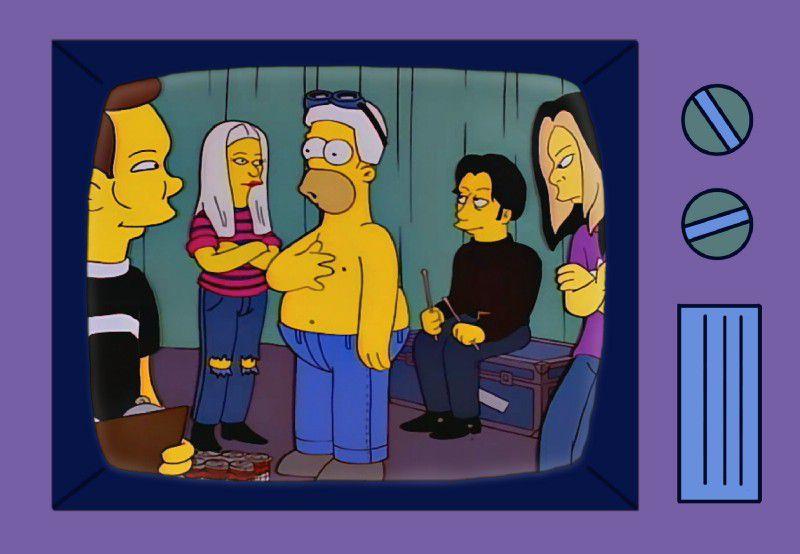 Back in the present, Homer scores tickets to music festival Hullabalooza. The lineup includes Cypress Hill, the Smashing Pumpkins, Peter Frampton, and Sonic Youth, the last of whom would agree to a cameo only if Courtney Love — the two bands had clashed at Lollapalooza ’95 — and Hole weren’t on the bill. "If she was going to be involved, we weren’t," Sonic Youth guitarist Lee Ranaldo told Entertainment Weekly in 1996. According to EW, Bob Dylan, Neil Young, and Pearl Jam all turned down the show’s invitation to appear.