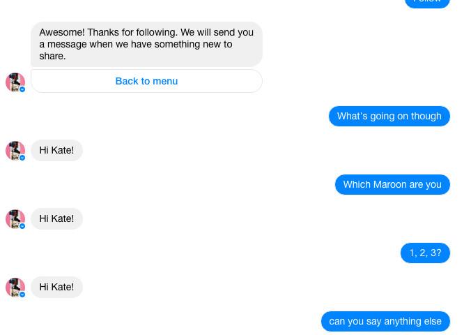Messenger was quickly flooded with tens of thousands of bots, but few of them achieved the conversation standard you’d expect from a friend (even by Facebook’s wildly overbroad definition of “friend”). Some general advice: Don’t find someone who looks at you the way the Maroon 5 chatbot looks at my colleague Kate Knibbs: