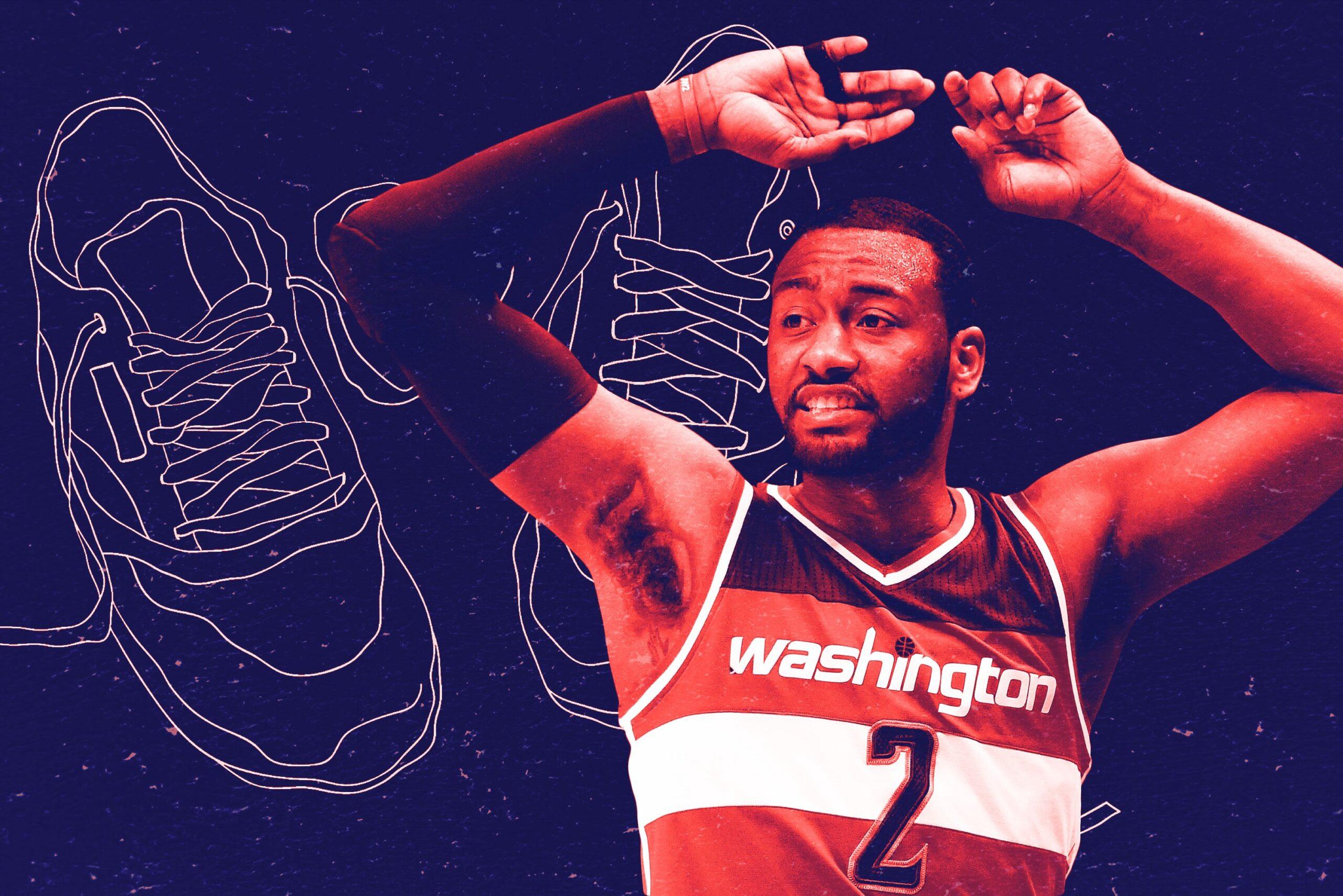 There was something remarkable about John Wall’s Game 1 exit, as red, white, and blue streamers fell all around him in the nation’s capital. It wasn’t Wall’s finishing stat line that stood out — though his 32 points on 50 percent shooting and 14 assists made for a career day. It was when he walked away from his postgame interview, in which Wall admitted he had “been through a lot in seven years,” that was most interesting: On his feet, he bore regular, non-signature blue Nikes.