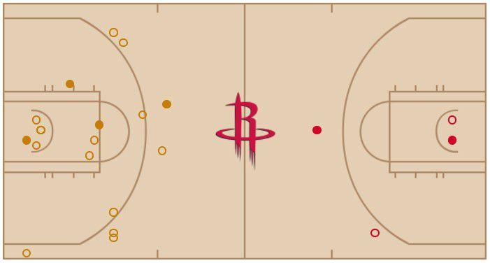 Westbrook will be criticized for what happened in the fourth quarter in Game 2, when he seemed to shoot the ball every time he touched it. The Thunder offense stagnated, and his shot chart from the final 12 minutes of the game was not pretty, especially in comparison with Harden’s: