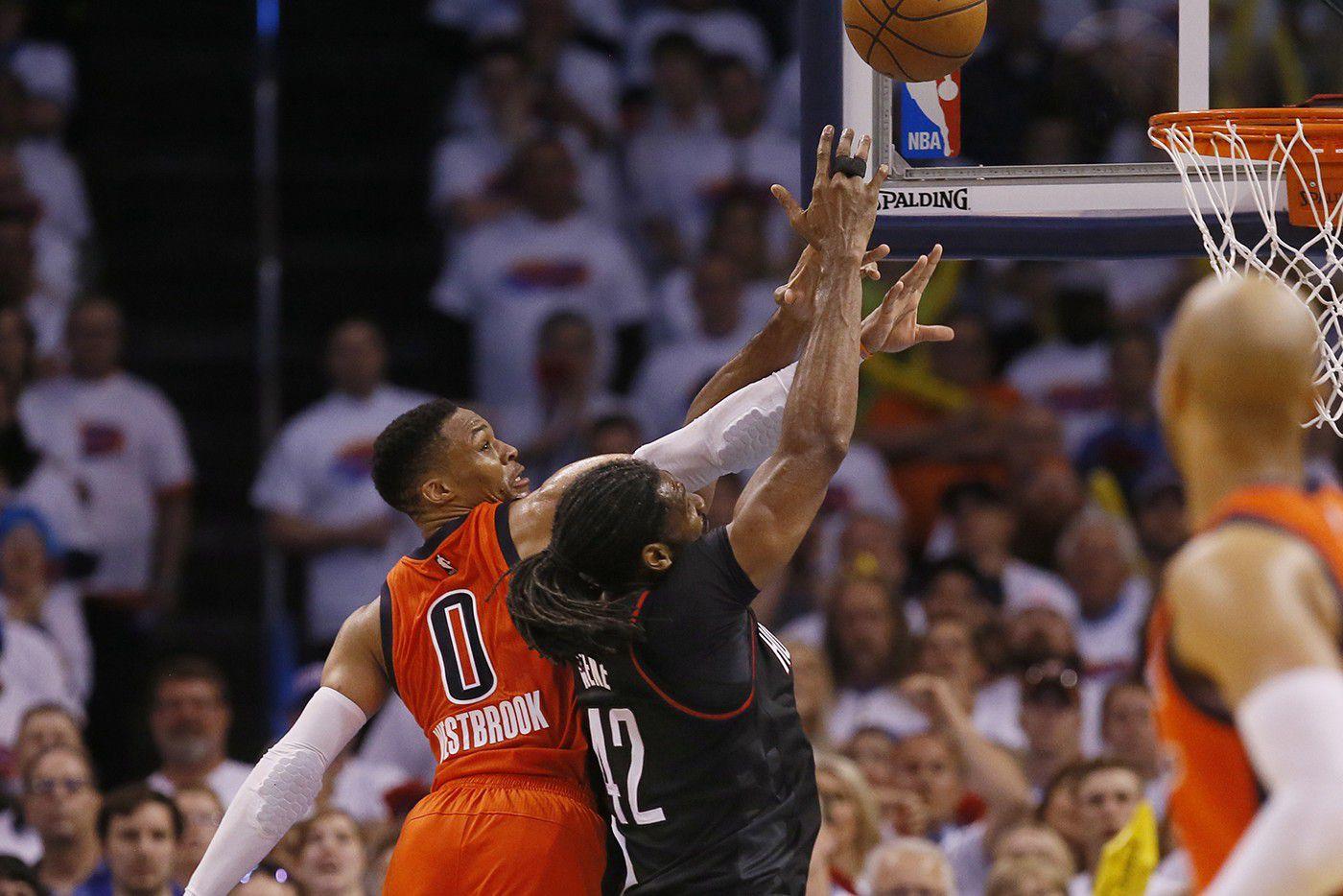 The Rockets were plus-24 with Nenê on the court. Enes Kanter couldn’t stop him, which is normal for players guarded by Enes Kanter; neither could Steven Adams, which is an aberration. He was excellent in the half court, grabbing offensive boards and hitting hook shots; he was better in transition, outsprinting the Thunder time and time again to earn easy slams and putbacks. He may be hitting over 92 percent (23-for-25) from the field this series, but he’s missing 50 percent of his attempts from the free throw line. It’s a bit of a theme.