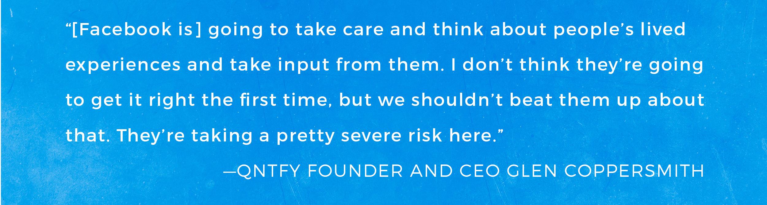 Like human intervention, machine-learning progress from Facebook and elsewhere won’t be perfect, especially not at first. “[Facebook is] going to take care and think about people’s lived experiences and take input from them,” Coppersmith says. “I don’t think they’re going to get it right the first time, but we shouldn’t beat them up about that. They’re taking a pretty severe risk here.”