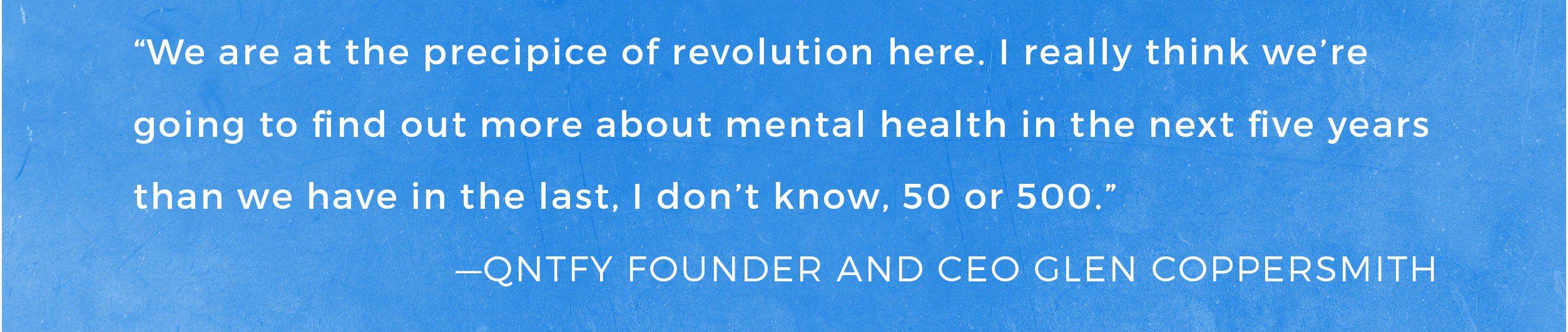 Facebook’s commitment to testing new suicide prevention tools is promising, but it’s not the only way social media networks can pitch in. If competing platforms work together, which they’ve shown flashes of by attending summits cohosted by Facebook and SAVE every two years, they may be able to help vulnerable people even more. Coppersmith points to the December announcement that Facebook, Microsoft, Twitter, and YouTube would team up to fight terrorist propaganda by sharing hashes, or digital signatures, of images and videos they’ve removed from their platforms with each other to prevent the spread of recruiting messages from ISIS and other terrorist groups. “I’m optimistic and I’m hopeful that we’re going to see something like this for suicide in the next couple of years,” Coppersmith says. “We are at the precipice of revolution here,” Coppersmith says. “I really think we’re going to find out more about mental health in the next five years than we have in the last, I don’t know, 50 or 500.”