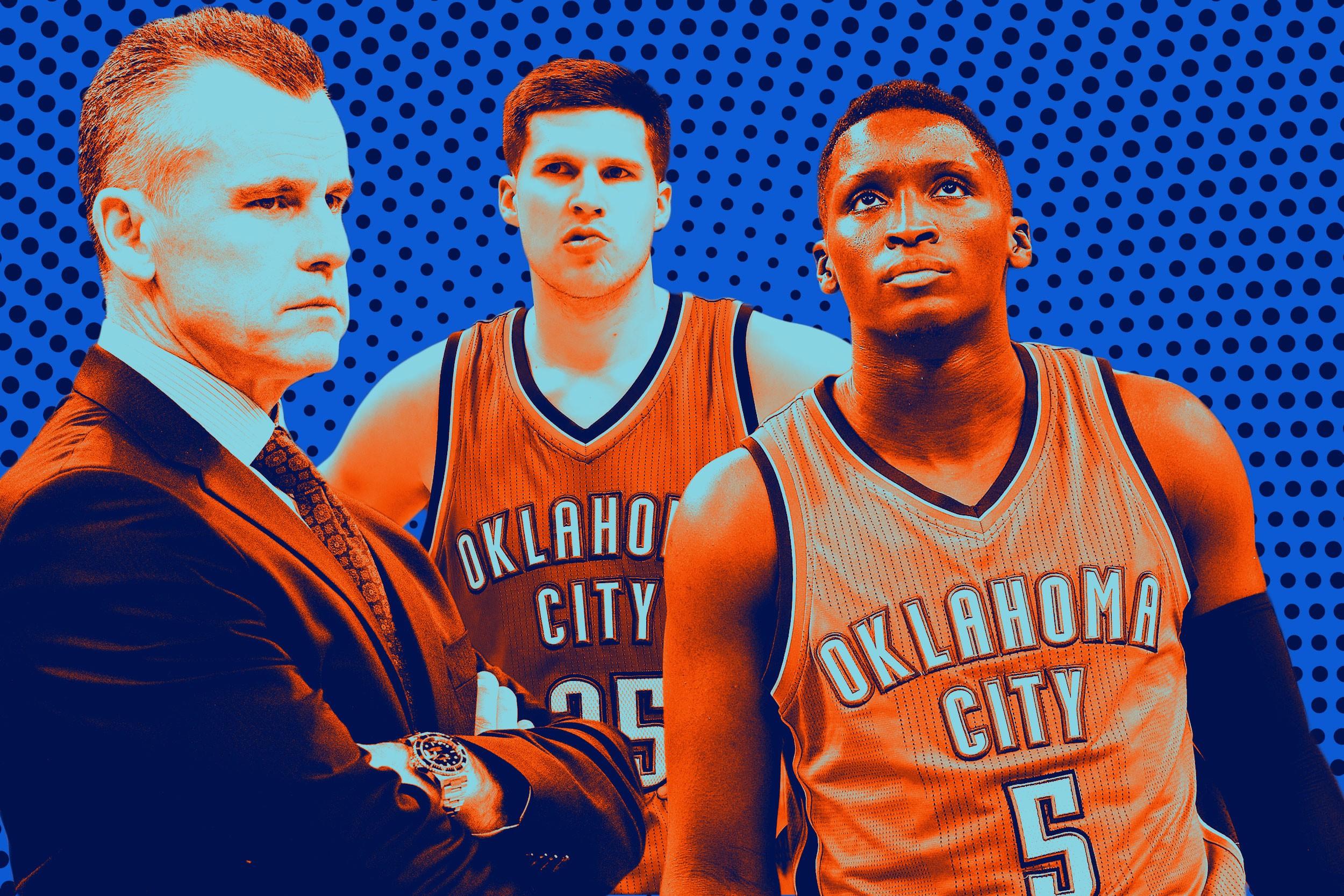 Given Oladipo’s contract, which will pay him $21 million annually through the 2020–21 season, Thunder fans would hope that the fourth-year guard can emerge as either Westbrook’s release valve, or as his replacement in the team’s second lineup. Oladipo averaged almost 16 points a game this season. He is, objectively, the team’s second-best scorer, but his contributions did not alleviate his team’s concerns. During the playoffs, he shot a disappointing 38.6 percent from the field and a woeful 21.1 percent from deep — but this is a five-game sample and Oladipo’s first taste of the postseason. It should be of greater concern that the former Hoosier hasn’t progressed much during his time in the league. His .534 true shooting percentage is identical to his number from last year, and only marginally up from his rookie mark of .514. On paper, Oladipo shows no signs of becoming the 21 Million Dollar Man that the Thunder clearly expected him to become.