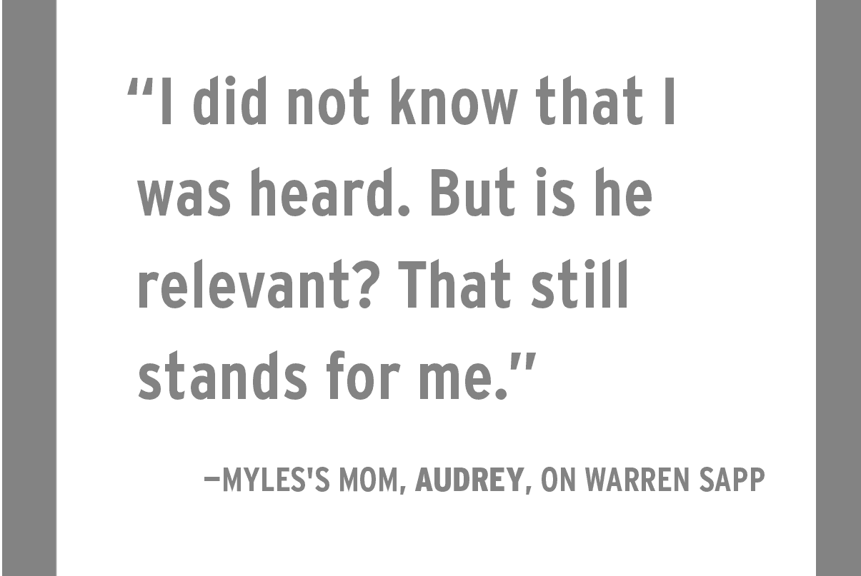 When Myles was asked about those comments later on a Facebook Live chat with USA Today, the mic picked up Audrey saying off-camera, “Is he still relevant?” in regards to Sapp. The blog posts ensued.
