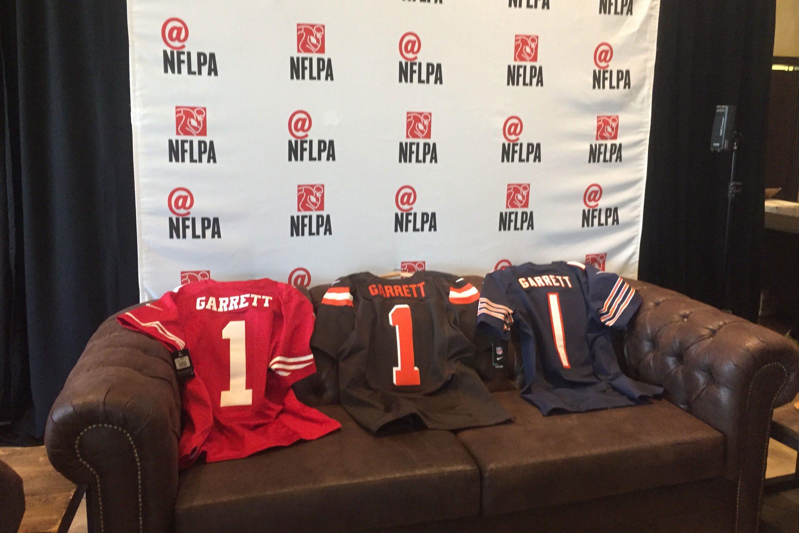 Garrett wasn’t worried about suffering an embarrassing greenroom fall; in fact, he says he never doubted that Cleveland would take him first. The Martin High School football booster club had similar confidence. Their flyer for a party at the Arlington bar J. Gilligan’s read, “Martin’s first No. 1 overall NFL draft pick” — and it was produced at least a week before the draft. The NFLPA took a more pragmatic approach. When Garrett stepped out of his Nissan Altima onto the Tierra Verde curb at 6:08 p.m., he saw that the association’s representatives had laid out jerseys for Cleveland, San Francisco, and Chicago, the teams with the top three picks in the draft, on the main couch.