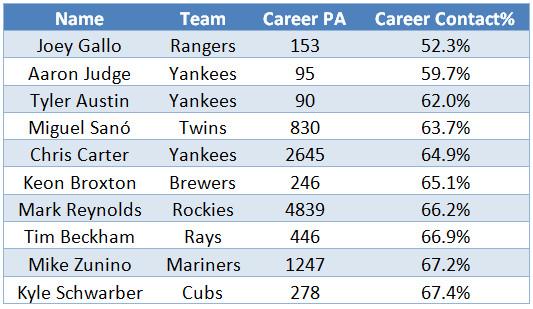 Increasing contact isn’t always a recipe for success: If you hit the ball only as hard as Jordan Schafer, you can make more contact and still be bad. If you’re Gallo or Judge, though, putting the bat where the ball goes is much more than half the battle. For them, the rest is easy.