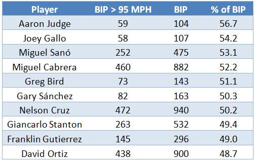 What ties these two hitters together, aside from how hard they hit the ball, is how often they once struggled to make any kind of contact. First, the hit hardness: During the two-plus seasons of the Statcast era — the 2015–17 period for which we have batted-ball speeds, and which also encompasses the careers of Gallo and Judge — no other hitter with at least 100 balls put in play has hit as high a percentage of those balls 95 mph or faster.