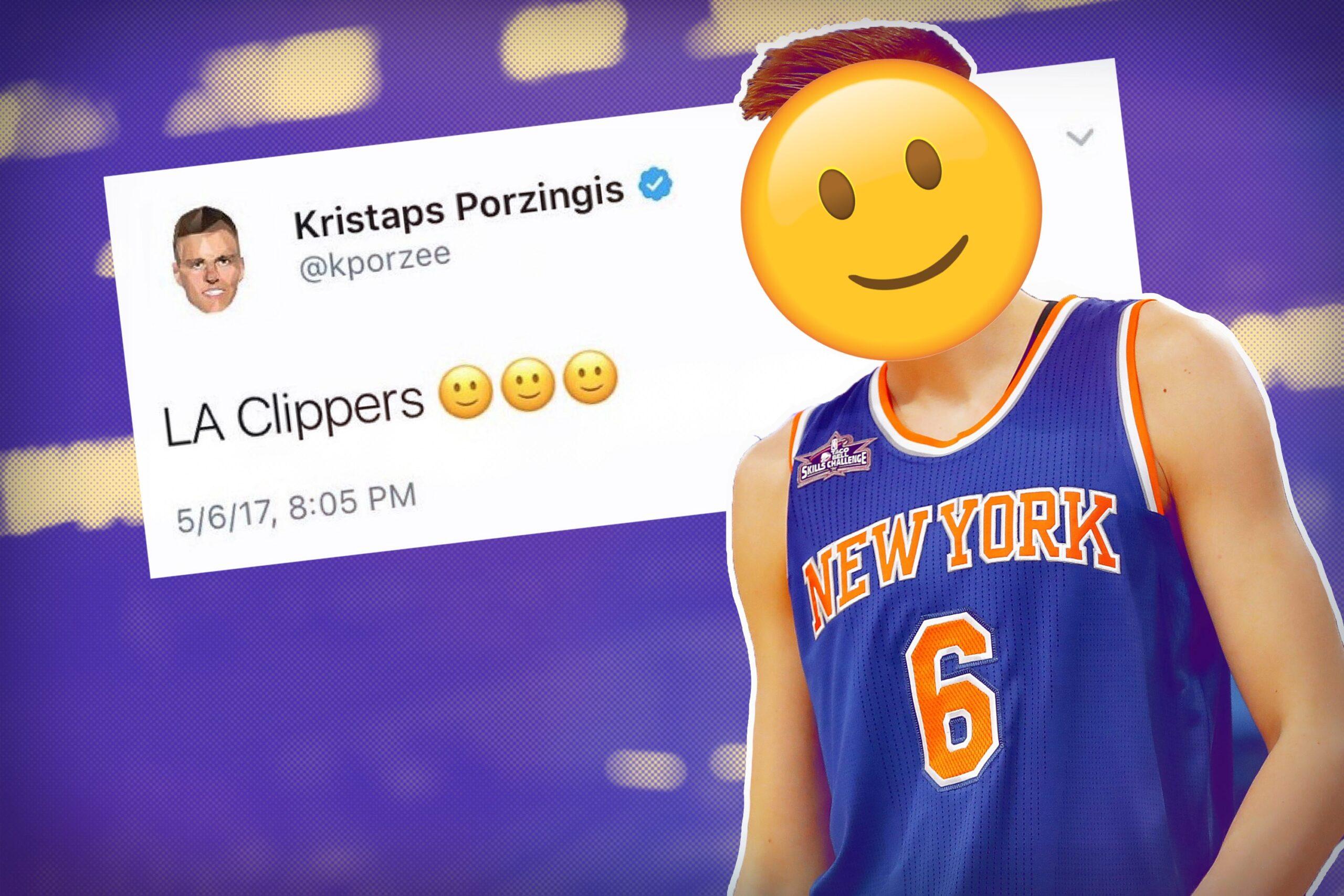 On Saturday, Kristaps Porzingis’s Twitter account tweeted then quickly deleted “Los Angeles Clippers” followed by three smiley-face emoji. (The emoji are important, so keep them in mind). This is notable because Porzingis just finished the second year of his rookie contract, has the kind of talent a team can build around, is the best Knicks draft selection since Patrick Ewing, and is my Large Adult Son. The Knicks are also a beached whale of dysfunction, rotting from the head down. The owner, James Dolan, is a flesh-and-blood argument for the estate tax. The president of basketball operations, Phil Jackson, is on a one-man mission to salvage the wreckage of the triangle offense from the bottom of the ocean before his contract expires two years from now.