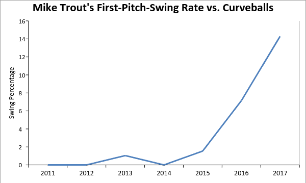 Nowadays, he’s not so predictable. Trout still takes most first-pitch curveballs, but not all of them. Make a mistake and center one, and he’ll help himself to a hack.