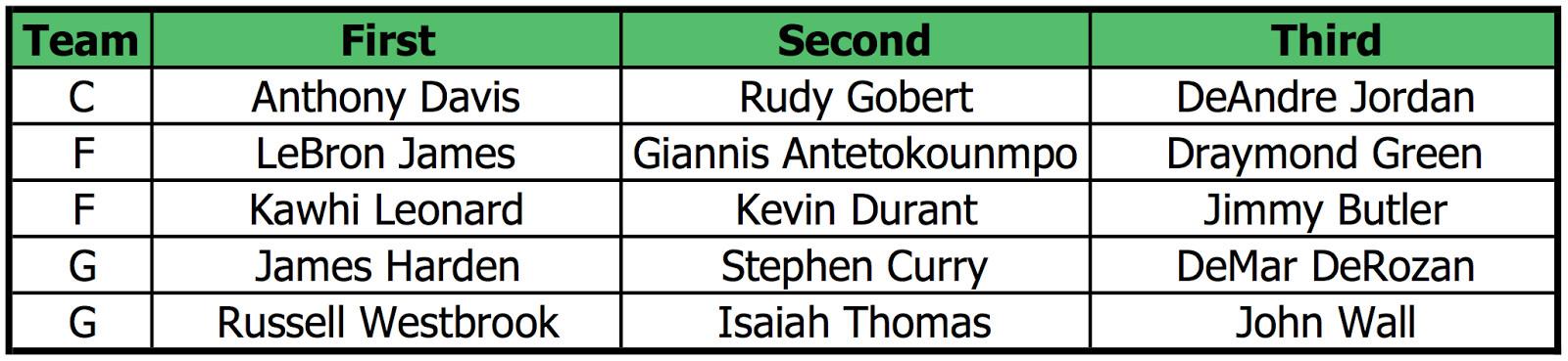 I spotted only two differences between my ballot and the final tally. I had Chris Paul in over DeMar DeRozan as a guard and Karl-Anthony Towns over DeAndre Jordan for the third team. Paul recognizes the vote: