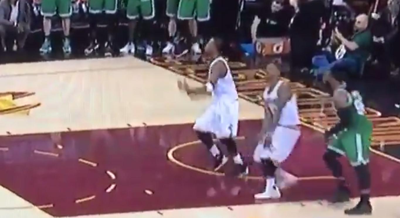 Damn, Brad Stevens had me actually thinking his big idea for the end of the game was to put Marcus Smart one-on-one with LeBron. You know who agreed with me? J.R. Smith, because that’s the only explanation for how he Bobby Fischered out of this play so badly. Credit to Avery Bradley, who might have faked Smith out a bit with his "I have no responsibilities here" pose to start the set. He’s got his hands on his hips right up until the second where he matadors Jae Crowder, completely confusing Smith.