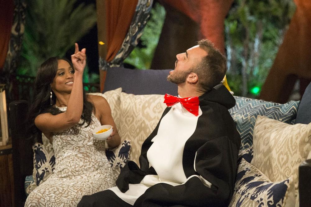 In the season premiere, they parade in front of their potential spouse — Rachel, a 32-year-old attorney and the first black person to appear as the central figure in 21 seasons of The Bachelor and 13 seasons of The Bachelorette. These men — most of whom seem, at first glance, to be dumber, less successful, less charismatic, and/or less attractive than Rachel — attempt to woo her with trash pickup lines and over-the-top gimmicks in hopes of doing something memorable enough that she’ll remember them over the other 30 dudes. Sometimes they wear penguin suits, hoping they will be remembered as fondly as Alexis, the woman who wore a shark suit on the most recent Bachelor season.
