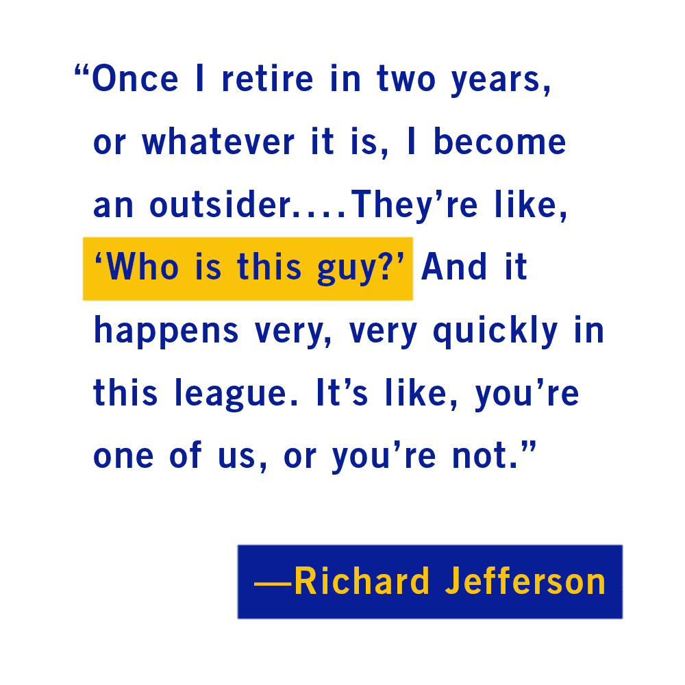 "Once I retire in two years, or whatever it is, I become an outsider," Jefferson said. "Those interviews you get on the plane, those interviews you get in the hotel, they don’t happen. They’re like, ‘Who is this guy?’ And it happens very, very quickly in this league. It’s like, you’re one of us, or you’re not."