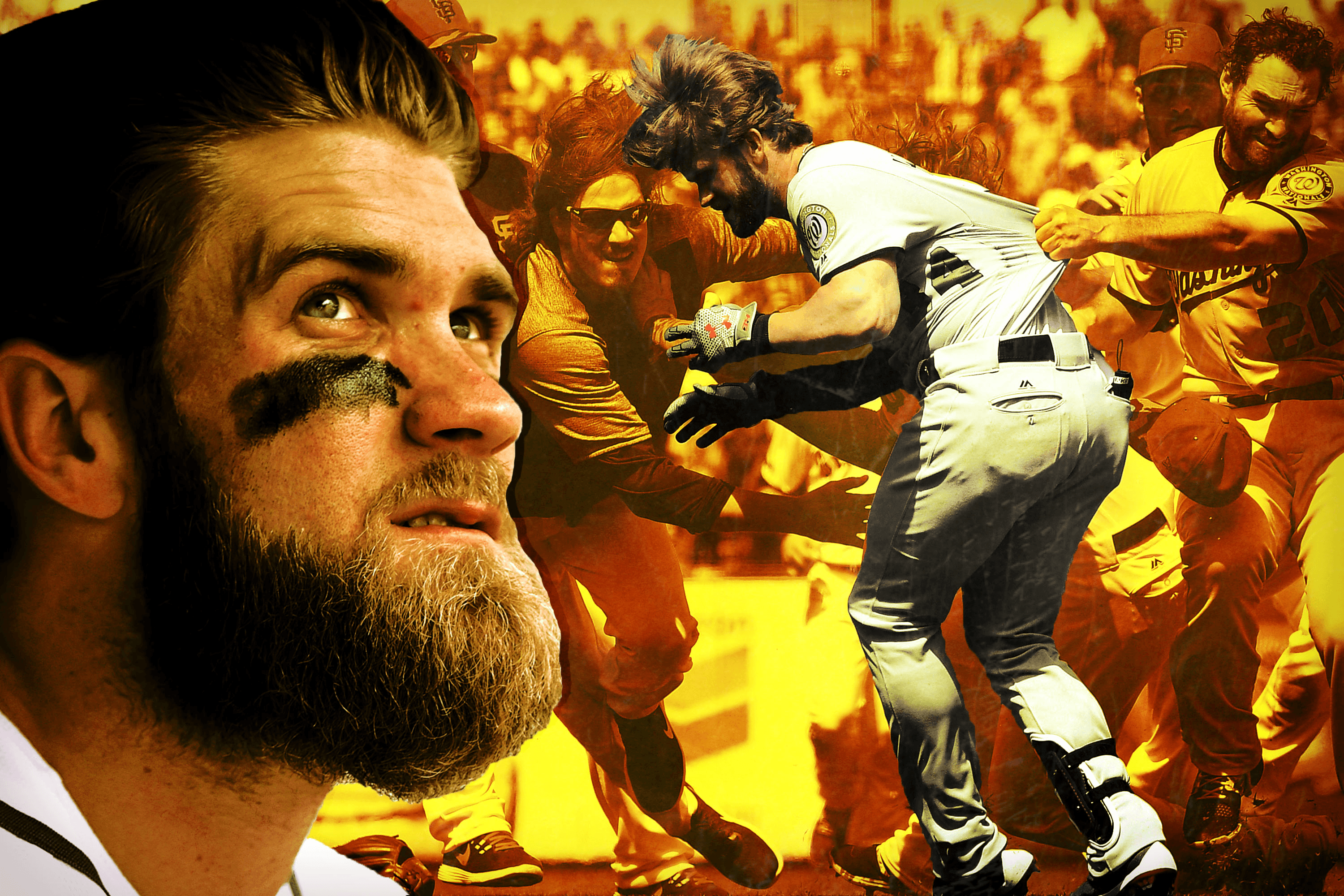 After it was over, Bryce Harper wondered why it had ever begun. On Memorial Day, during the eighth inning of a game between the Washington Nationals and the San Francisco Giants, Harper went up to face Giants relief pitcher Hunter Strickland and was beaned, at 98 miles per hour, in the hip. Harper pointed his bat toward the mound, tossed it to the side, ripped off his batting helmet, and sprinted in Strickland’s direction. He tried hurling his plastic lid at the pitcher’s head, but his form was less "recent league MVP" and more "guy with the yips."