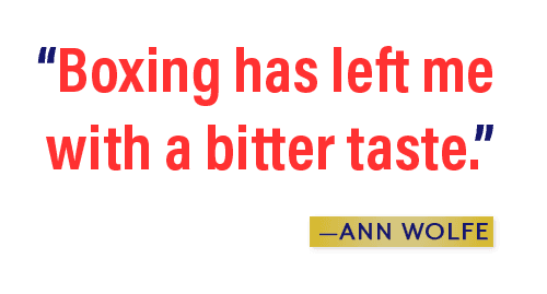 Ann Wolfe no longer obsessively follows boxing. We meet a few days prior to the Canelo Alvarez–Julio Cesar Chavez Jr. bout, and when I mention "the big fight this weekend," she does not know what I am talking about. (Lucky her.) Then, after she praised Andre Ward for his faith and maturity, I asked if she thought he deserved his controversial unanimous decision over Sergey Kovalev. "I didn’t even watch it," she says. "I’ma tell the truth."