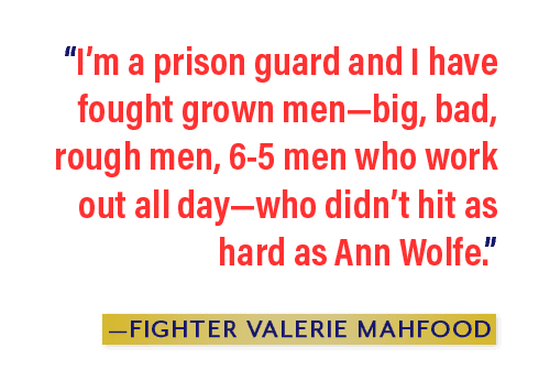 Valerie Mahfood, who faced both women in the ring, thinks the dream fight would’ve been one-sided. "Ann Wolfe would’ve killed her, which is why Laila didn’t fight her." Mahfood believes this even though she defeated Wolfe in the first of their three fights. Wolfe’s power, she says, would have neutralized Ali’s speed and technical prowess. "Ann Wolfe is the person who has hit me the hardest in my life," Mahfood says. "I’m a prison guard and I have fought grown men — big, bad, rough men, 6–5 men who work out all day — who didn’t hit as hard as Ann Wolfe."