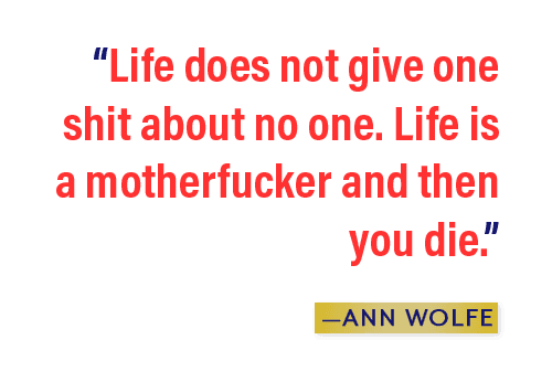 The layers of trauma piled up. Wolfe’s mother died after a bout with colon cancer in 1989 at the age of 46. She left behind six children. Walker had a warning for Ann before she died. "‘Y’all got that Wolfe in you. It’s gonna come out. You a killer,’" she remembers. "I tried to hide that shit. After my mom died it was time for me to be a Wolfe."
