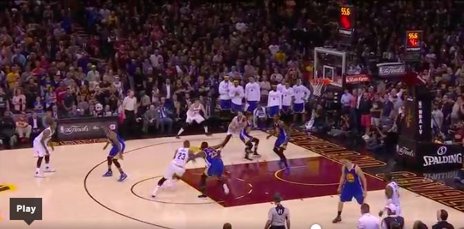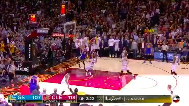 Call me crazy, but I think this was the single-biggest play of the game. If Korver hits this 3, the Cavs go up 116–111. Everything else could have gone exactly the same, and the Warriors would’ve found themselves down 116–114 with about 20 seconds left, needing another basket to tie the game. Instead, they took the lead on the next possession and never relinquished it.