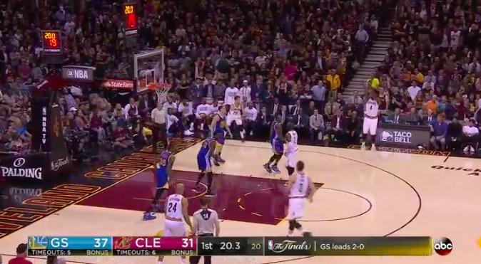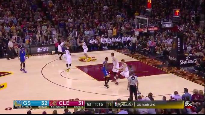 1:39 Steph Curry hits a 3 over Kevin Love