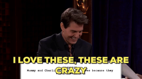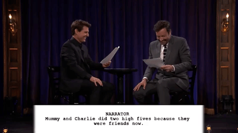 On The Tonight Show, Fallon had Tom read lines from scripts written by children. It was a vaguely funny concept, and it certainly elicited some moments worth laughing at. You can watch the whole thing here; the part I want to direct attention to is almost exactly halfway through, after Cruise and Fallon finish reading their second script. First, Fallon breaks into laughter and keels over; Cruise, seeing Fallon do this, then does almost the exact same thing: