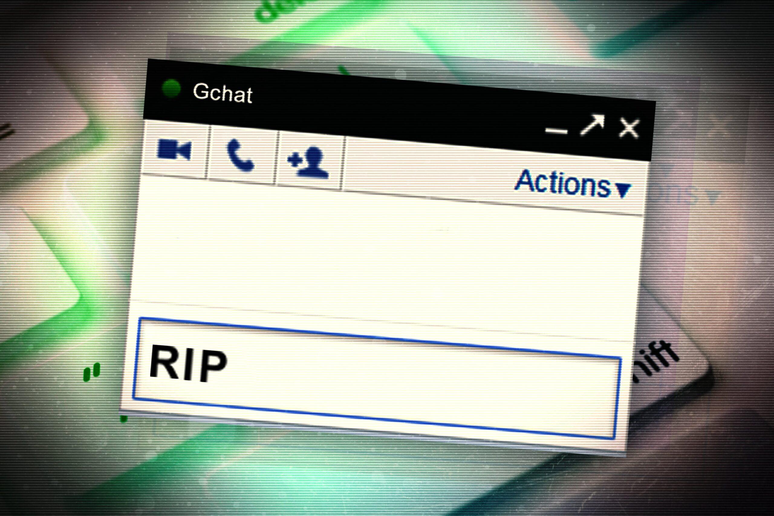On June 26, when the tech giant formally forces the last remaining Gchat holdouts, including yours truly, onto the substitute-teacher-incarnated-as-chat-platform that is Hangouts, users will have their choice among that, Allo, Duo, Android Messages, Supersonic Fun Voice Messenger, and Voice. Google, which has infamously floundered in its attempts to build social platforms, will bury Gchat in its graveyard alongside Wave, Buzz, Labs, iGoogle, Picasa, Dodgeball, Knol, Jaiku, and others, including [pours one out] [pours another one out] [goes to the store to buy more things to pour out] [breaks into neighbor’s apartment to pour out his things, too] Google Reader.