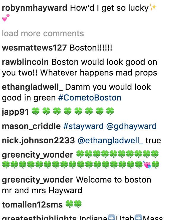 Boston has no chill. Just ask Isaiah Thomas, who began following Hayward on Instagram on Tuesday.