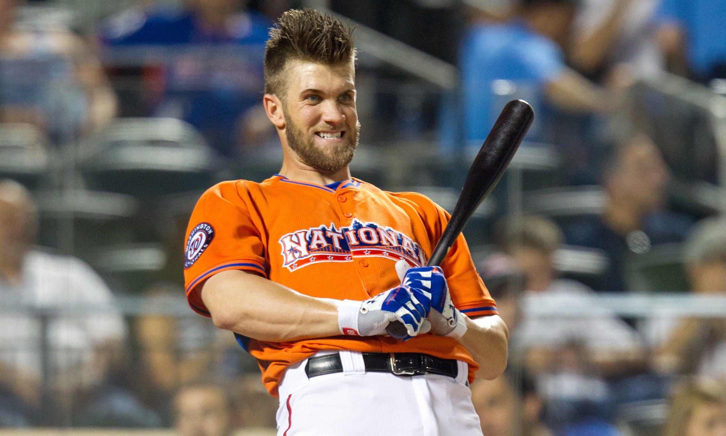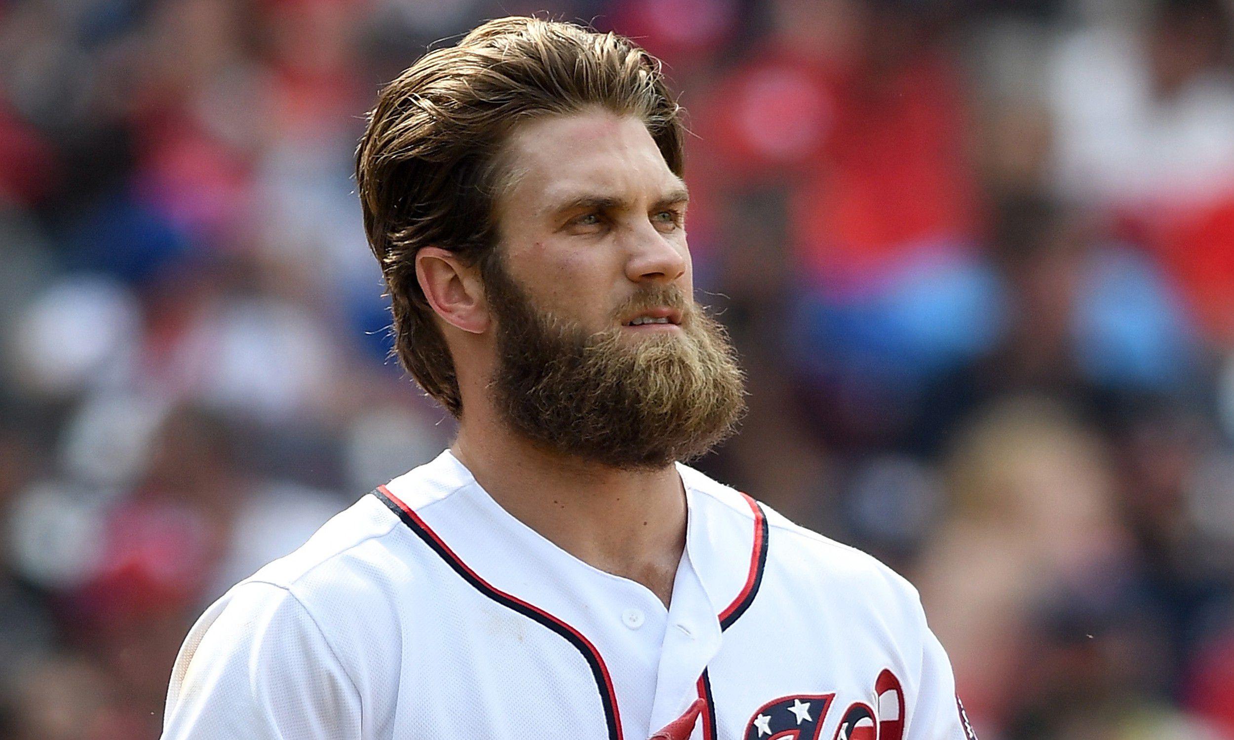 Bryce Harper’s got a great head of hair. This we’ve also known for years. It’s an essential part of the Trout v. Harper Rorschach test: The unassuming Trout has traditionally gone with a conservative high-and-tight look, with only occasional forays into fauxhawkdom, while the brash and id-heavy Harper has always had a cool haircut, starting with — next slide, please — the aggressive Home Run Derby fauxhawk from 2013, aided by his signature Suavecito pomade.