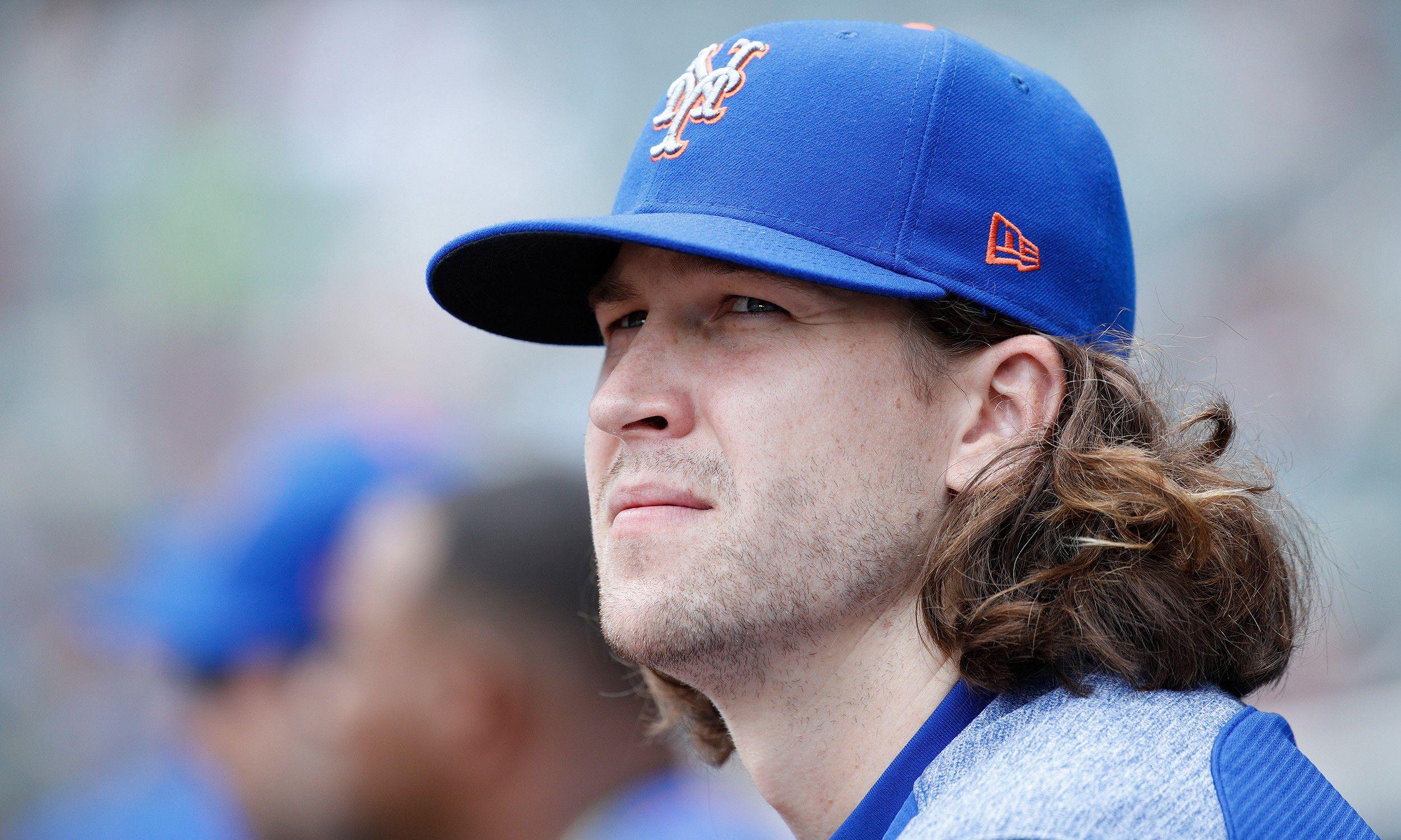 Look how squished that is. Or take Mets, whose entire rotation looks like it’s a post-grunge act angling for a spot at Lollapalooza in 1996. Jacob deGrom and Robert Gsellman have stupendous hair — enough volume and waviness to warrant maintaining that length past the age of 22. But under a cap, as you can see here with deGrom …