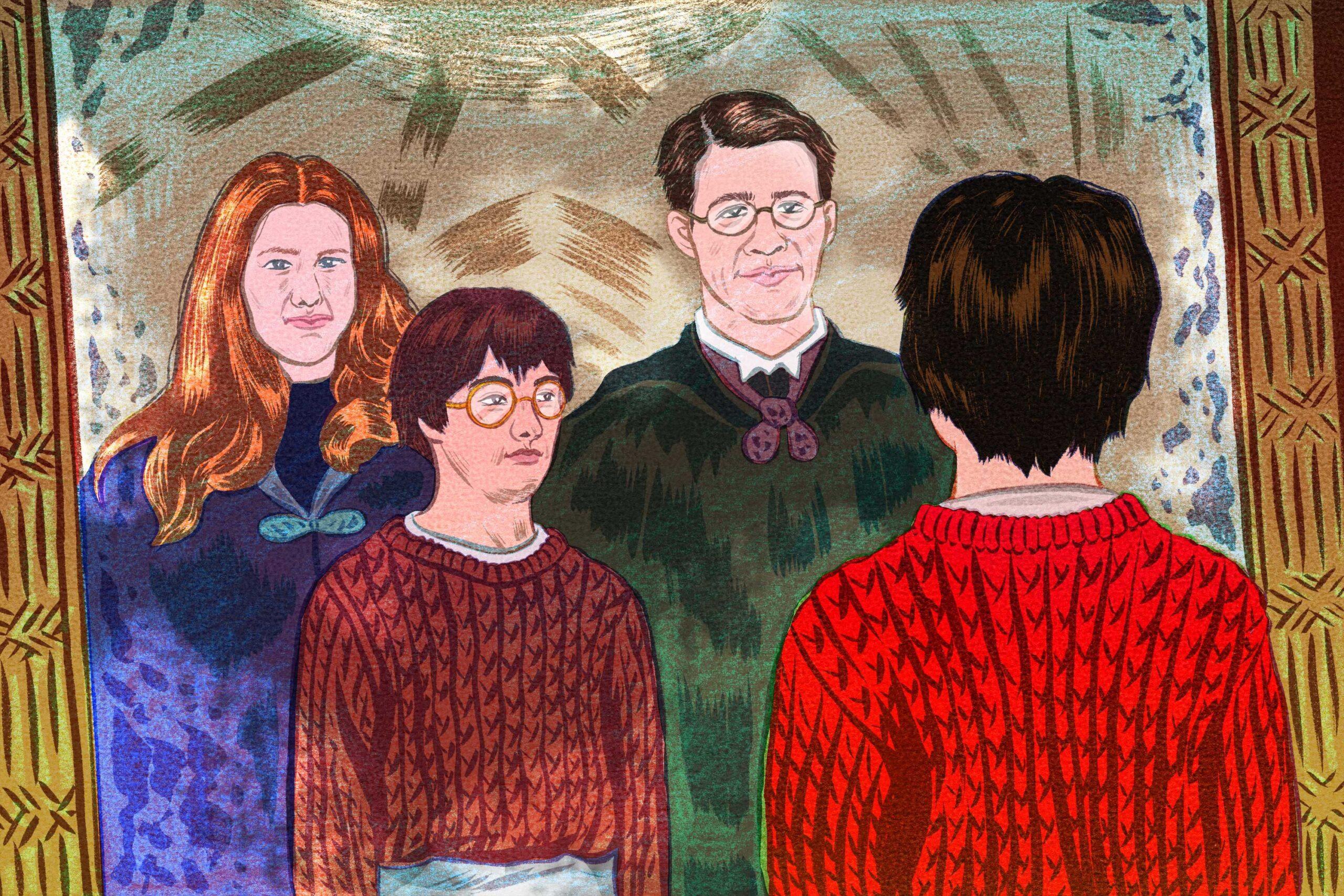 That explanation makes Harry’s vision all the more beautiful, and all the more heartbreaking. When Harry stares into the mirror, he sees the parents he hasn’t known since he was a baby reflected back at him, smiling, flanking him on either side.