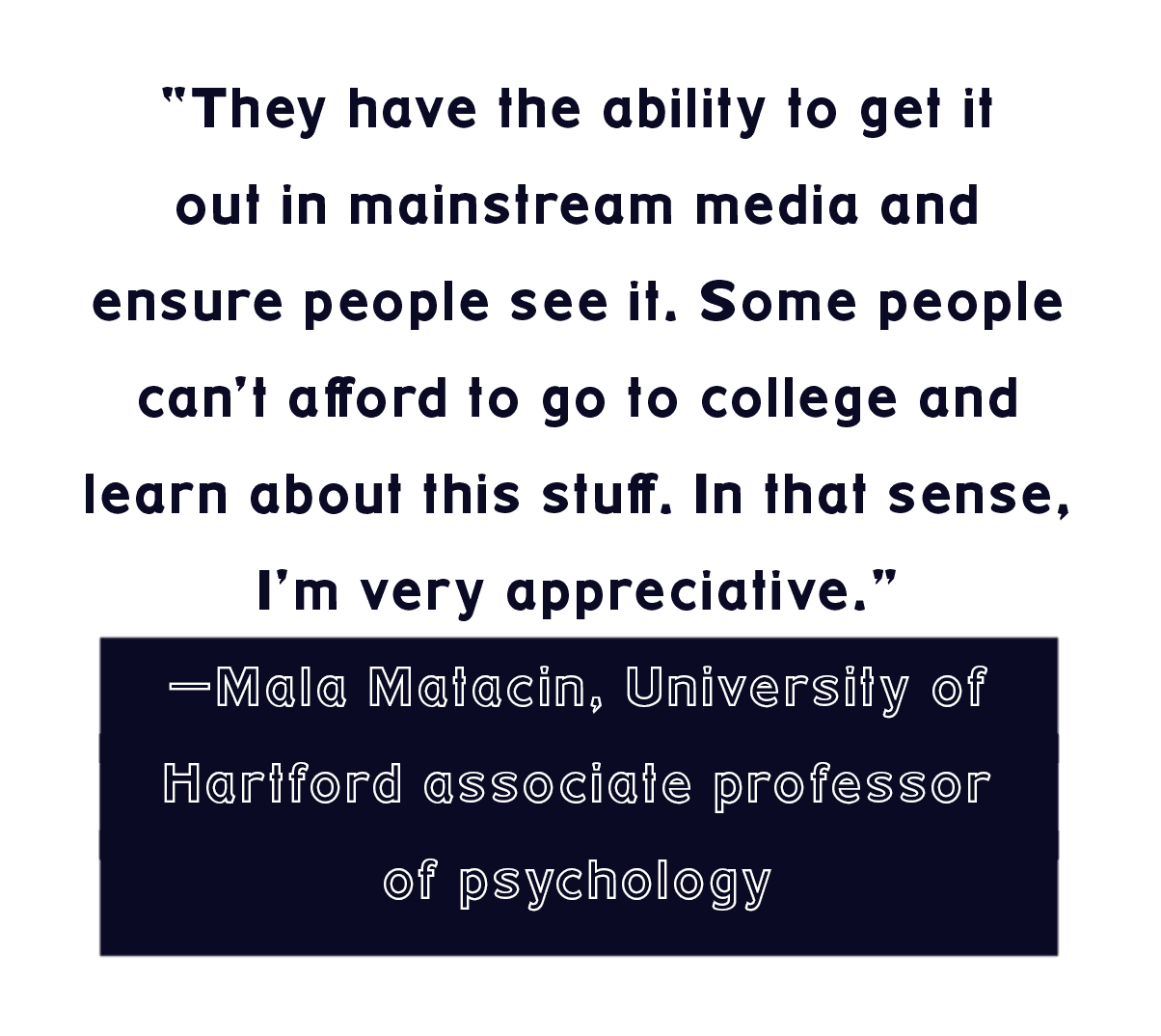 “In some ways, these companies are the ones who have the access and the money to produce campaigns like this,” Matacin said. “And they have the ability to get it out in mainstream media and ensure people see it. Some people can’t afford to go to college and learn about this stuff. In that sense, I’m very appreciative.”