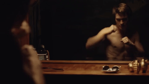 2. When he boxes in front of a mirror: