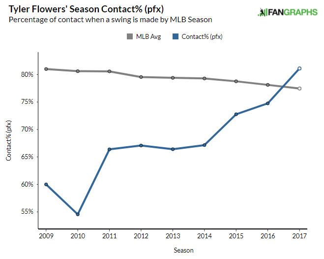 In 143 plate appearances last season prior to that game, Flowers had posted a 91 wRC+ with a 69 percent contact rate. In 178 plate appearances thereafter, he leg-kicked his way to a 118 wRC+ with a 79 percent contact rate. "Kind of like the pitch-framing thing, it’s something black and white I can define my timing with," Flowers says. "There’s a literal time where I want to be in certain spots within that leg-kick that again, through studying or watching other guys doing it, I found to be the common denominator. We often refer to things within our swings by clicks, referring to the click of a mouse, a frame of video. So I want to be at the top of my leg-kick in one click going down before the pitcher releases the ball. … It took me until the leg-kick to actually have any sort of definition of my own personal timing, whereas before I guess it was just raw ability."