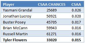 In time, some of the early-season data could be discarded or revised, which might change Flowers’s framing ratings — not from great to bad or average, but perhaps to slightly less great. Suzuki’s framing stats, in the same setting, are still below average. And as I’ve followed Flowers’s stats since early June his framing numbers have only improved, even as the system at SunTrust has worked out its kinks.