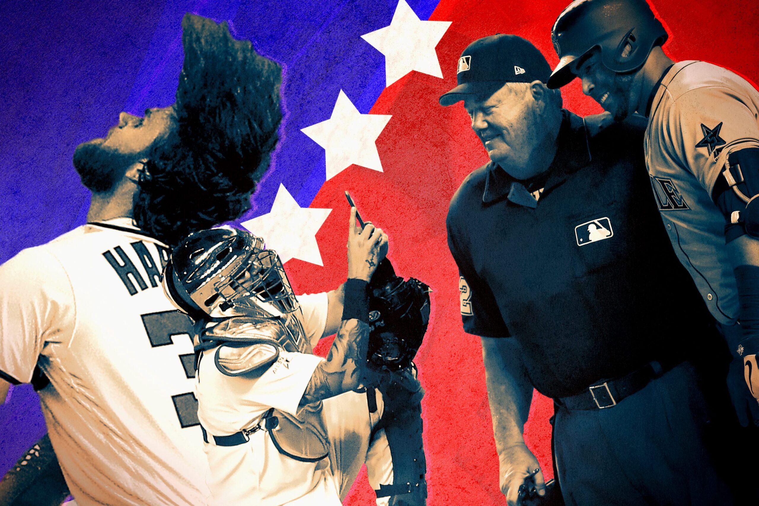 During the regular season, a hitter might take offense to a fielder speaking with announcers during an at-bat. On Tuesday, George Springer and Bryce Harper both conducted interviews from the outfield. These conversations were neither enlightening nor especially insightful, but they were still a fun twist on baseball’s fixed broadcasting pattern. Springer’s bewilderment at third baseman José Ramírez standing so close to Giancarlo Stanton at the plate was worth a chuckle. (On a serious note, Springer, who has experienced a stutter his whole life and advocates on behalf of young people with a stutter, speaking extemporaneously on national television while fielding his position was a worthy and meaningful moment.)