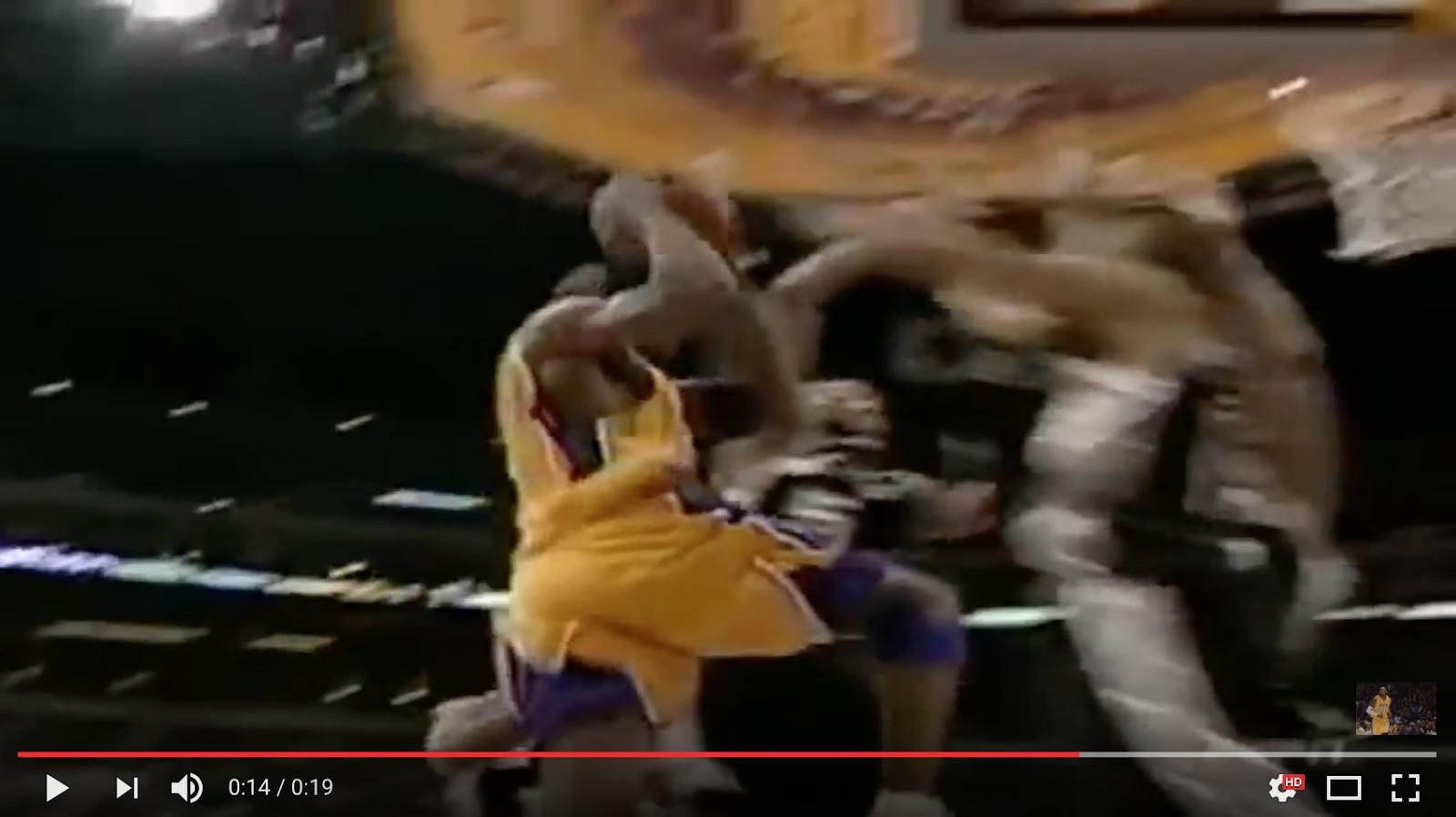 As Kobe got there, so too did Robert Horry, Tony Parker, and Tim Duncan, all of whom jumped to try to block the shot. There aren’t any HD versions of the video on the internet, so here’s a blurry screenshot of that precise moment:
