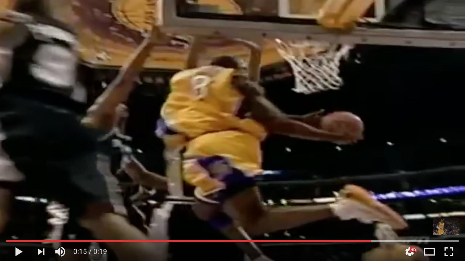 Kobe, a basketball master, lowered the ball down some, twisted his body just enough to somehow squeeze through everyone, then slid the ball over onto the entire other side of the rim. Look at this goofy, incredible, impossible shit:
