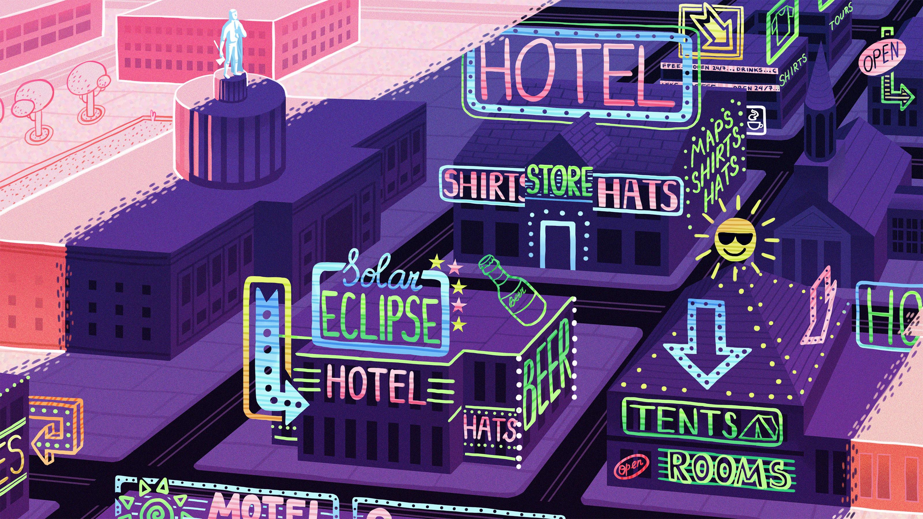 For some small American cities, there are financial opportunities and major pitfalls in the coming solar eclipse. Can tech companies monetize this massive natural occurrence?Thanks to two measly minutes on August 21, the Salem-Keizer area of Oregon is about to become a tourist trap for the first time. Thousands, maybe hundreds of thousands, of people are about to rush an otherwise ordinary destination. Salem-Keizer is full of churches, fast food chains, and two terrible shopping malls. It’s easy to overlook. But I know its real value: It’s a mere hour from Portland and the coast, and just another 20 minutes to the mountains. There are lush parks lining the Willamette River. And abandoning I-5 for the backroads around the area takes visitors through loping, hop-filled valleys. The streets of downtown Salem are wide, a geographic marker of Mormon towns that make for easy parking.