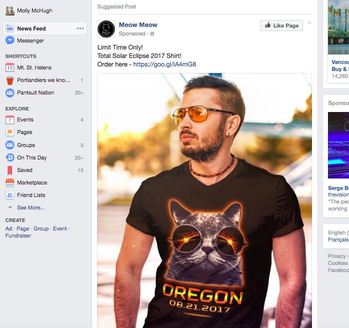 While nothing about the nature of a total eclipse has changed, the marketing of the wilderness and everything above and beyond it has evolved light-years. Now, there are hundreds of thousands of tutorials on how to use your smartphone to capture the eclipse, and various internet-enabled accommodation tools. There is Facebook Events, which has been used to schedule innumerable eclipse-watching parties. (I was invited to one by a friend who lives in Salem more than a year ago.) Facebook advertising has also been eclipsed-out: For the past month, my feed has been an eclipse event-and-apparel advertising vehicle.